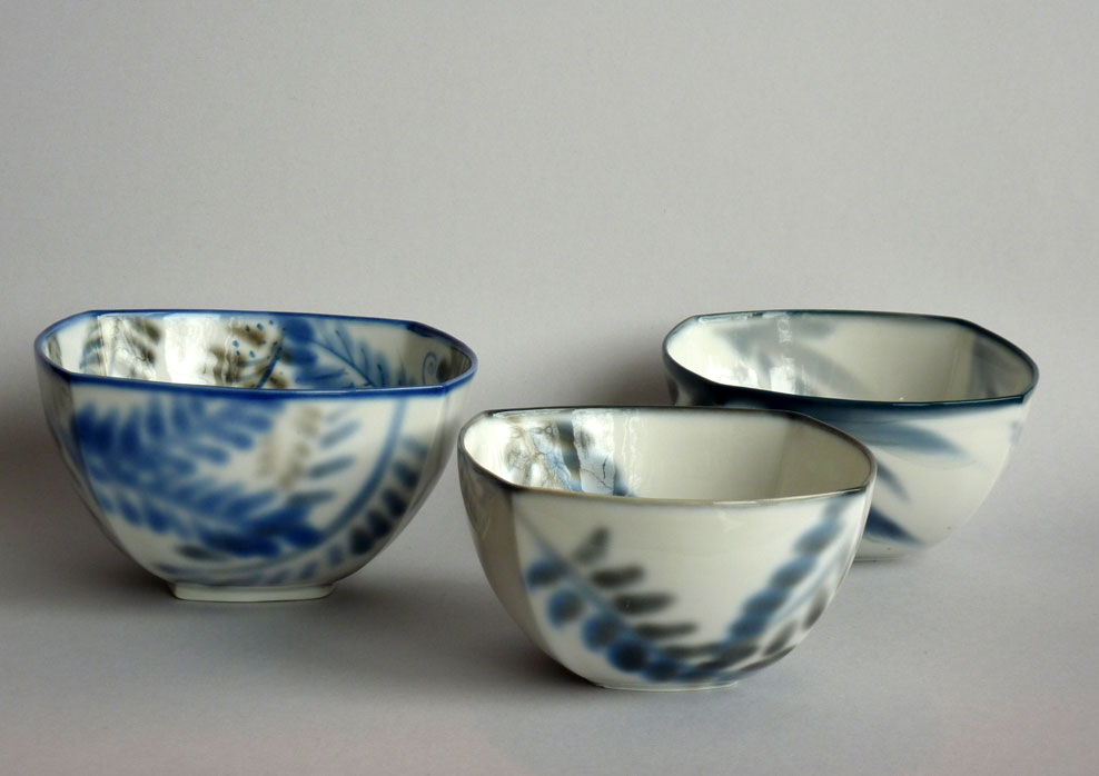 Sabine Kunkel-Zenker 3 Schalen, frei geformt, Dekor handgemalt 15cm