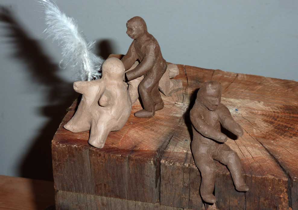 Sabine Kunkel-Zenker Zuschauer Tonfiguren auf Holz